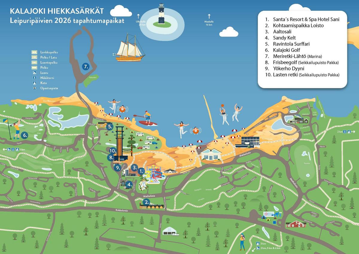 Leipuripäivät Kalajoki 2026 -tapahtuman ohjelma sisältää mm. seuraavaa (ks. alla oleva kartta Leipuripäivien tapahtumapaikoista):